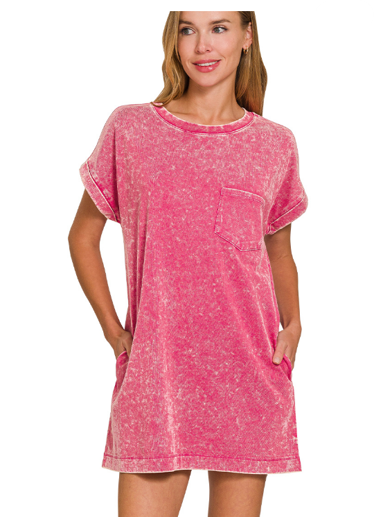 Erin Washed T Shirt Dress - Pink