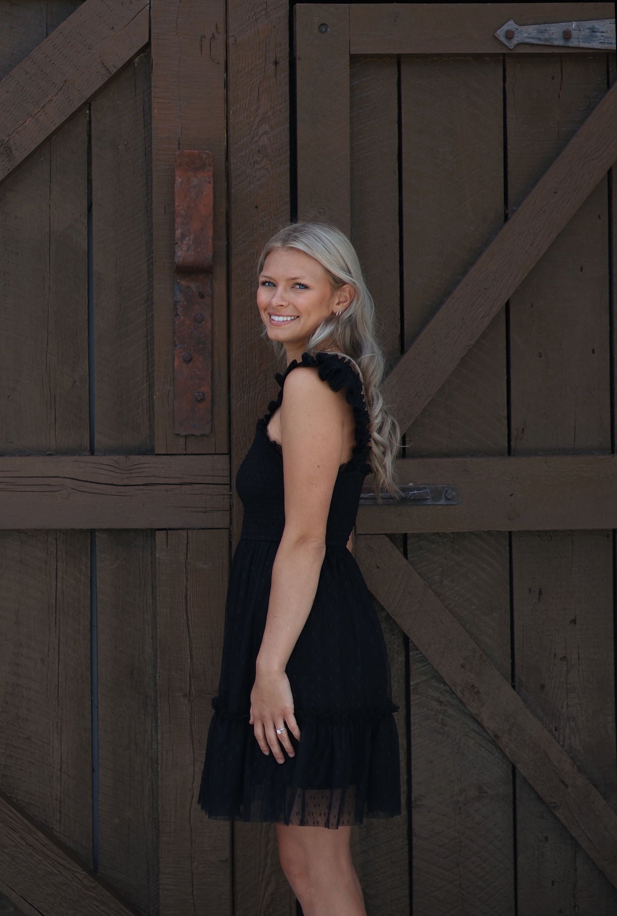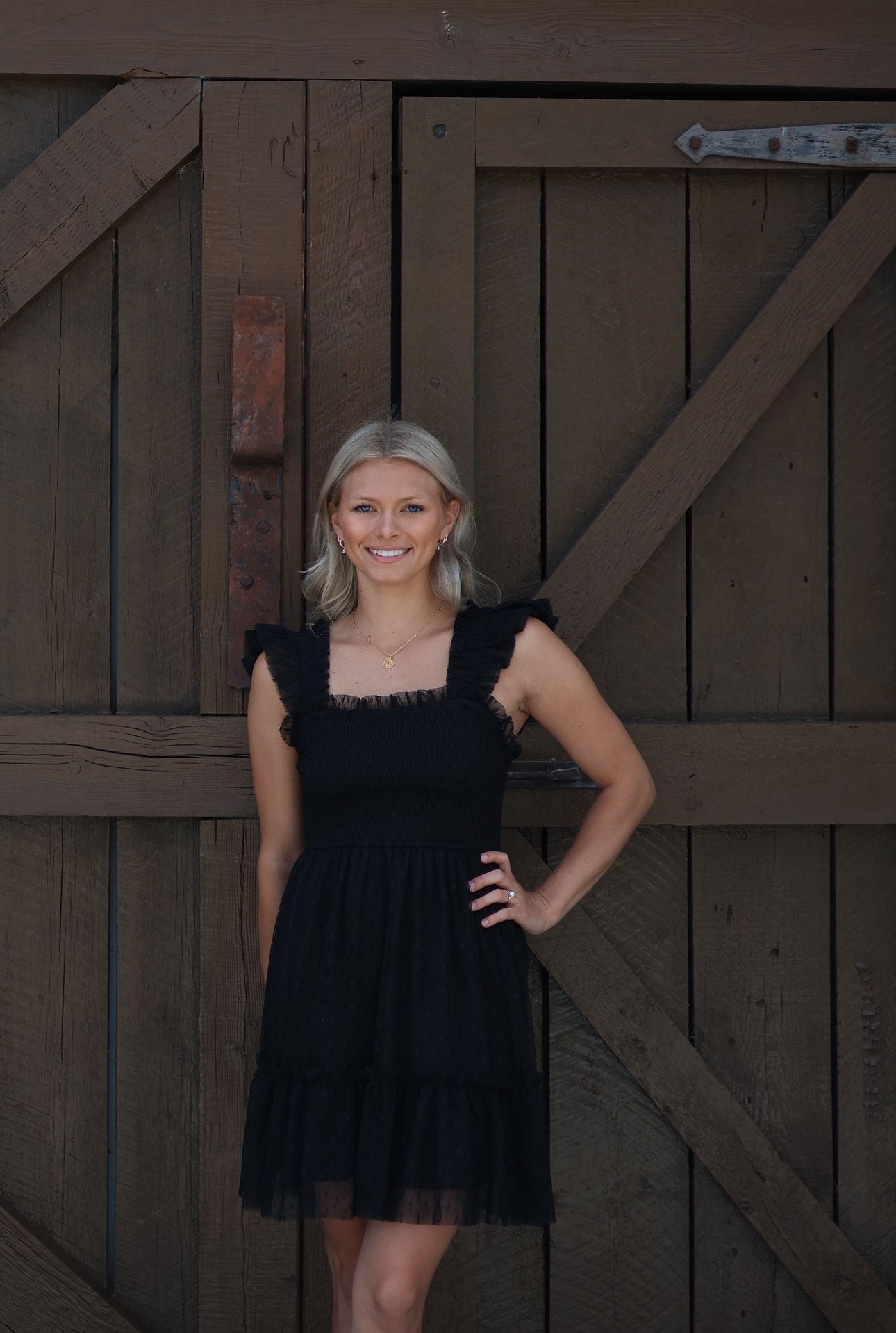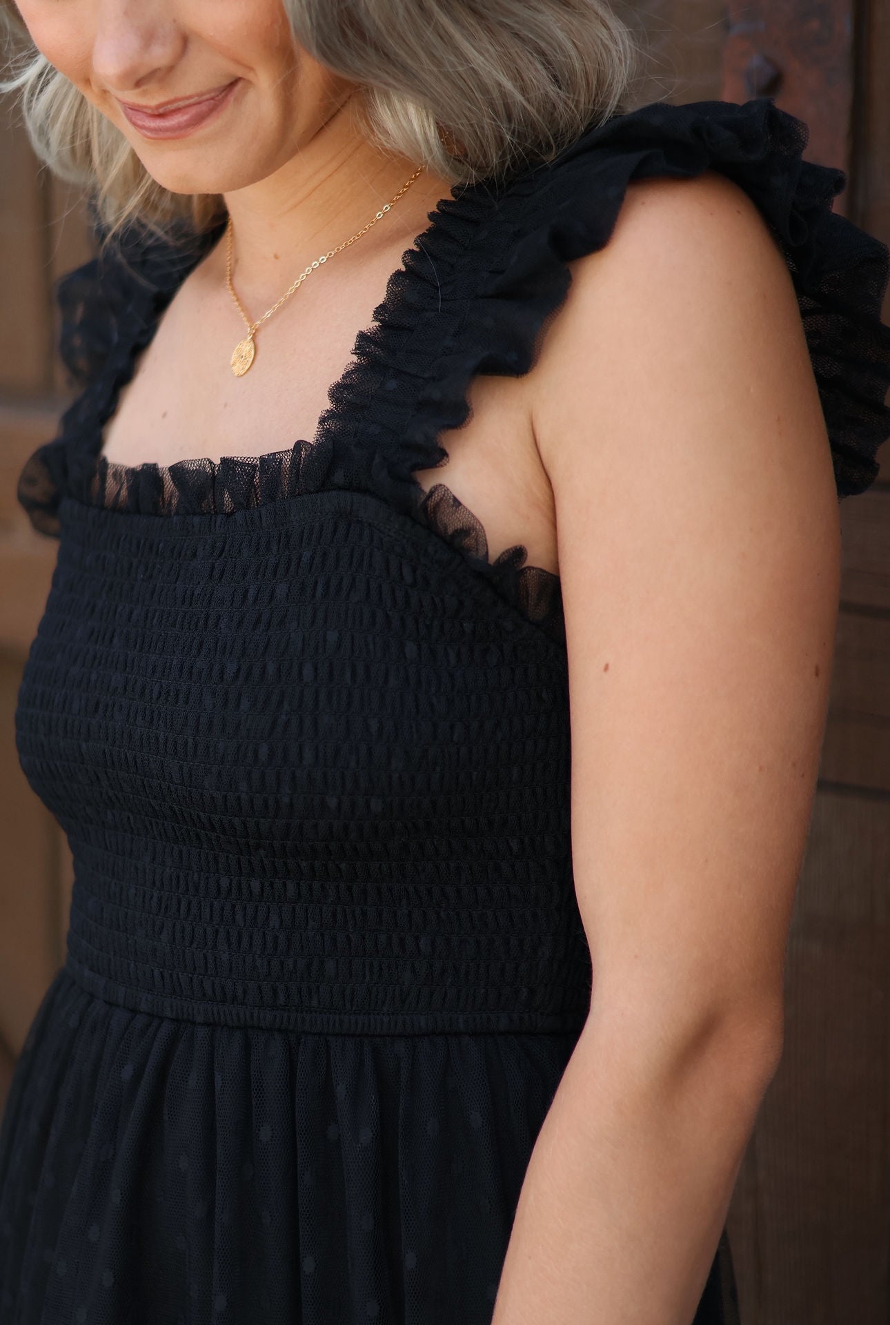 Flirty, feminine, and full of charm — the Maggie Smocked Mini Dress is the perfect mix of playful and polished. Featuring a fitted smocked bodice for a flattering silhouette, this dress stuns with its sheer dotted mesh overlay and romantic ruffle detailing at the straps and hem. The soft, flowy skirt creates effortless movement, while the mini length adds a youthful, airy vibe. Style it with heels for an evening out or keep it casual with sandals — either way, the Maggie makes a statement.