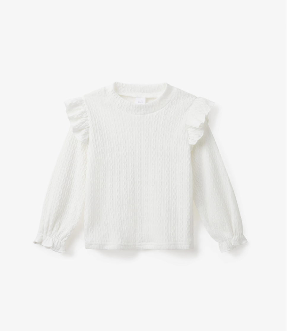 Adorable two-piece set featuring a crisp white ruffle top paired with a rich brown corduroy skirt. The ruffled sleeves add playful charm, while the soft corduroy skirt offers comfort and durability. Perfect for everyday wear or special occasions. Mix-and-match pieces let her style them separately as she grows.